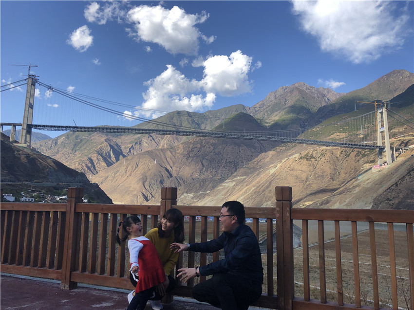 2014年大橋開建,柏國(guó)勝夫婦就把家安在了大橋旁的工地,把辛勤汗水融入這片土地,如今3歲的小孩就在當(dāng)?shù)赜變簣@讀書,成為地道的“瀘定人”。
