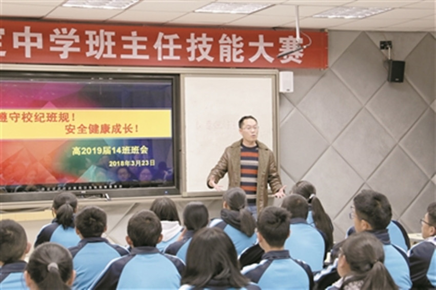 班主任技能大賽分二個階段進行,第一階段比賽中,12名班主任先后進行了教育故事敘述、情景答辯兩個環(huán)節(jié)的角逐,經過激烈角逐,6名班主任進入了微班課展示。在比賽的各個環(huán)節(jié),參賽班主任結合班主任工作實際,深情講述自己的教育故事;根據(jù)情景案例,進行深入分析,提出解決問題辦法;將情景案例升華成一節(jié)主題班會課。