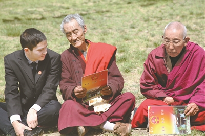我州司法行政系統(tǒng)首創(chuàng)的“菜單式”普法深深吸引了農(nóng)牧民群眾。在農(nóng)牧區(qū),農(nóng)牧民群眾主動和司法局工作人員“對接”。印有“別人借了我的錢不還,我可以通過法院幫助要回嗎?”“出去打工時,公司讓交保證金怎么辦?”等法律問題的普法菜單在老百姓手中成為了熱議話題。”“以前遇到一些生活上的問題不知道怎么辦,現(xiàn)在政府給我們發(fā)了這樣的普法‘菜單’,我們可以根據(jù)自己想了解的內(nèi)容請工作人員進(jìn)行解答?!苯眨瑺t霍縣宜木鄉(xiāng)村民尼瑪獲悉自己需要的法律知識,十分高興。