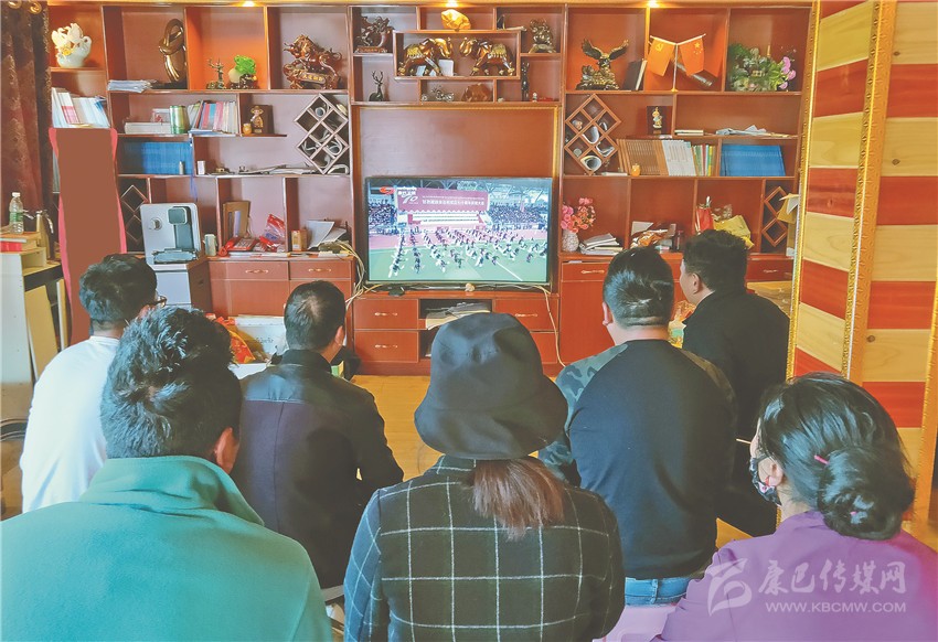 理塘縣干部集中收看慶祝大會直播。