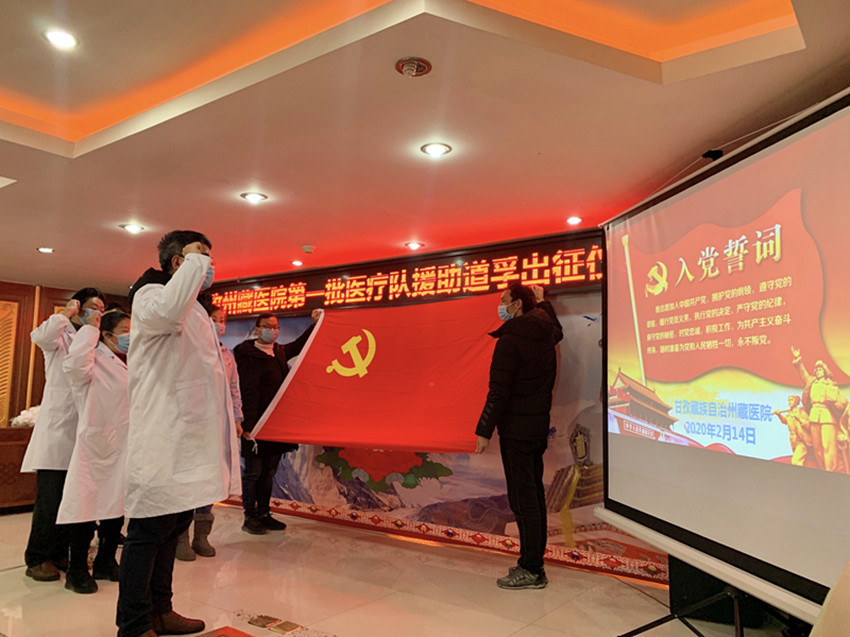 事實證明,州藏醫(yī)院的擔(dān)心和提前準備完全是必要的。2020年2月,道孚縣爆發(fā)疫情,全縣進入管控狀態(tài)??粗约旱募亦l(xiāng)發(fā)生疫情,州藏醫(yī)院的醫(yī)護人員心急如焚。盡管對這未知的病毒心中沒底,但沒人退縮,全院上下皆積極請戰(zhàn)。在醫(yī)院黨委再次申請下,州抗疫指揮部研究同意了藏醫(yī)院參與抗疫工作,2月14日,在時任副院長、主任藏醫(yī)師江吉村的帶領(lǐng)下,藏醫(yī)診療隊奔赴道孚。這是新中國成立以來,藏醫(yī)首次參加的大型抗疫阻擊戰(zhàn)。