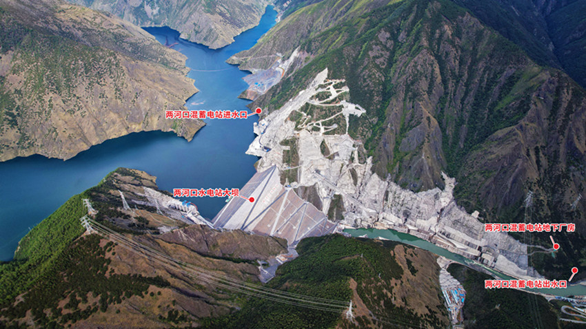 雅礱江兩河口混蓄電站與兩河口水電站位置。