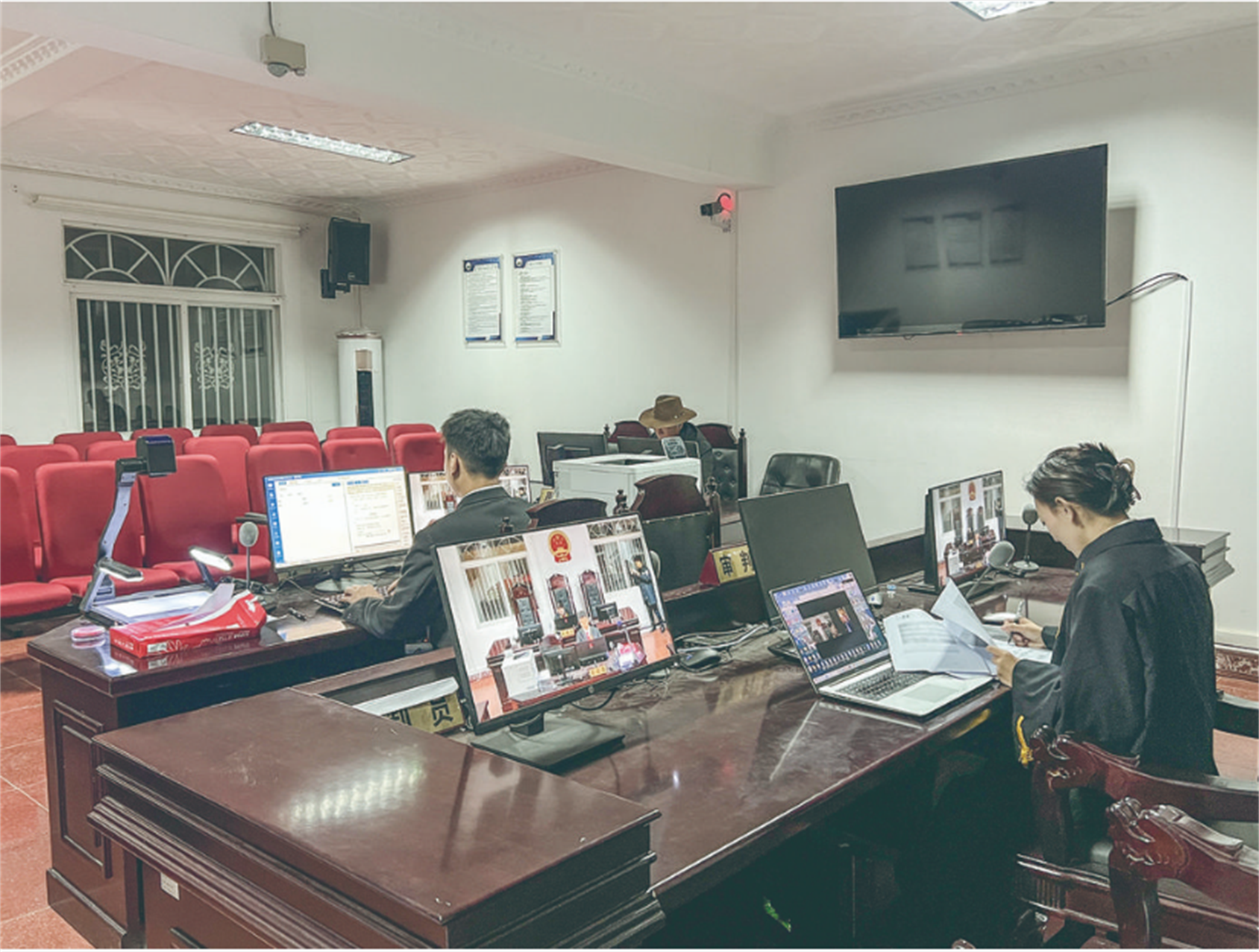 夜幕降臨,月光皎潔,新都橋法庭里卻燈火通明。為解決當(dāng)事人白天忙于工作、無(wú)暇分身前往參與訴訟的難題,法庭工作人員充分利用吃住在法庭的便利條件,結(jié)合本院“法庭110”工作機(jī)制,積極探索并推出“夜間法庭”,即在晚上不定期組織調(diào)解與開(kāi)庭。