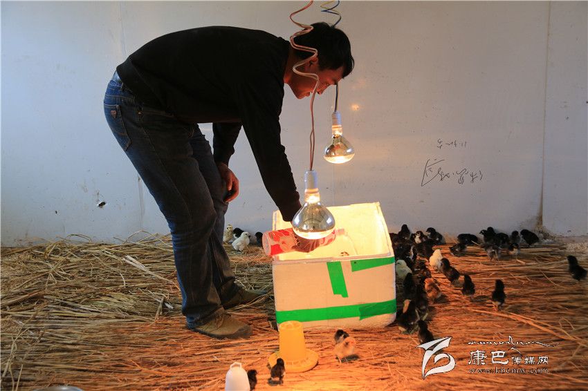 3月16日,在彭澤的引領(lǐng)下,記者走進(jìn)了新修養(yǎng)雞場內(nèi)孵小雞的溫室。黃黑兩色羽毛的小雞在溫室里走來走去,看到彭澤走進(jìn)來,它們搖頭晃腦迎了上來。又到了吃飯、喝水的時間,小雞們準(zhǔn)備飽餐一頓。
