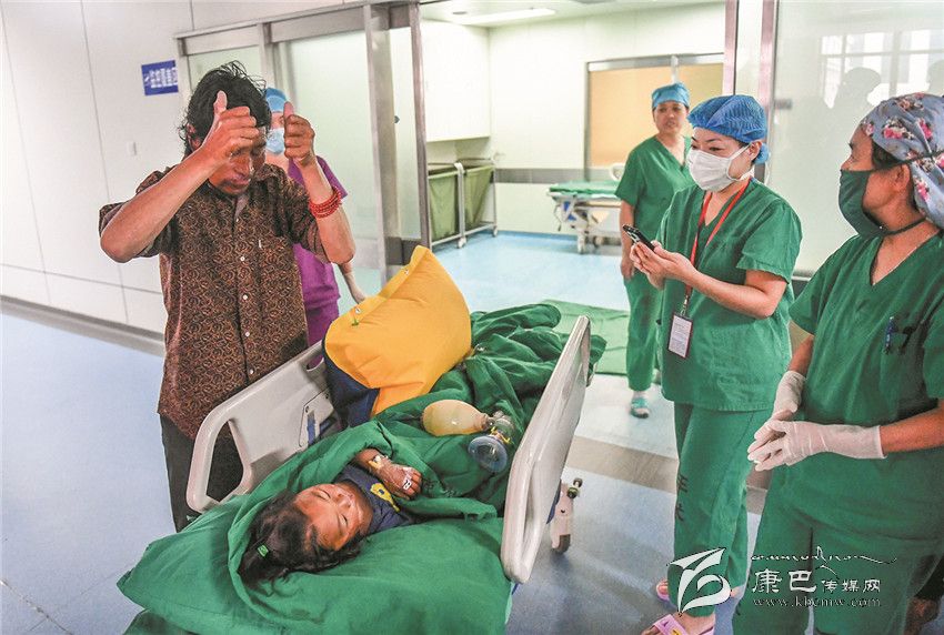 8月23日,來自四川省甘孜藏族自治州甘孜縣兩歲的藏族男孩白瑪日扎在哈爾濱市第一醫(yī)院成功進(jìn)行唇腭裂修復(fù)手術(shù)。白瑪日扎的父母是牧民,常年在大山上放牧,兩個(gè)月才能下山見一次孩子。白瑪日扎和爺爺生活在甘孜縣里。 8月中旬以來,哈爾濱市第一醫(yī)院攜手“中國(guó)宋慶齡基金會(huì)”、“一笑慈善基金”項(xiàng)目開展大型公益活動(dòng),特邀國(guó)際頜面外科、美容整形外科、麻醉科等醫(yī)療專家團(tuán),免費(fèi)為貧困家庭唇腭裂兒童手術(shù)治療,并為特困家長(zhǎng)和孩子提供免費(fèi)的食宿,白瑪日扎便是免費(fèi)接受救治兒童中的一員。8月23日,白瑪日扎的爺爺白瑪多吉(左)對(duì)醫(yī)護(hù)人員伸出大拇指表示感謝。 新華社發(fā)