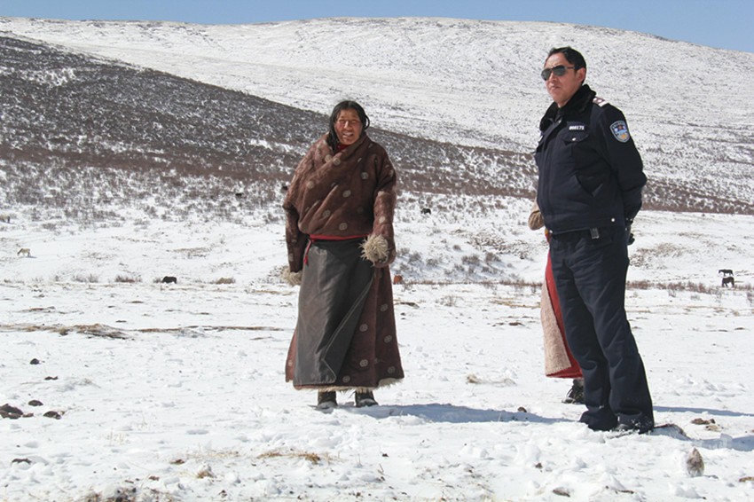 得知這一情況,王志剛和幾個民警帶上急需物資,騎著摩托車前去救援。雪太大,半路上,王志剛和戰(zhàn)友不得不放棄摩托車,每人背著幾十斤物資,踏著齊膝大雪,徒步4個多小時,及時將救命物資送到。臨走時,王志剛給牧民留下幾百元錢。
