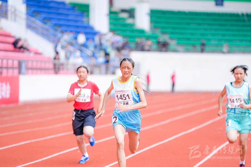 7月15日,甘孜州康定北門體育場田徑賽場,甘孜州第五屆中小學(xué)生運(yùn)動(dòng)會(huì)女子乙組200米決賽在陣陣加油聲中激烈進(jìn)行,來自九龍縣中學(xué)的學(xué)生運(yùn)動(dòng)員劉志英如一只藏羚羊邁動(dòng)雙腿,向著終點(diǎn)進(jìn)行最后的沖刺。當(dāng)她在歡呼聲中第一個(gè)跑過終點(diǎn),立刻獲得迎上來的隊(duì)友的祝賀——此屆中小學(xué)生運(yùn)動(dòng)會(huì)田徑第一個(gè)“雙金王”誕生了。