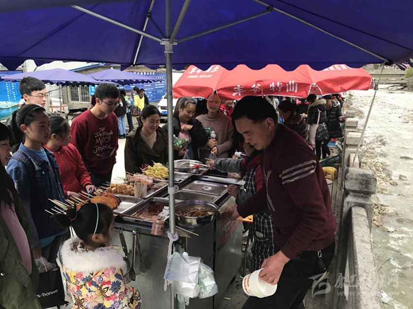 那么真實情況到底如何呢?7日,記者專門來到康定中學(xué)走訪調(diào)查。記者搭乘出租車前往學(xué)校,途中司機卻回應(yīng)“康中校門口那一段全是賣炸洋芋、炸雞腿的攤攤,車子根本開不過去,只能提前下車?!碑?dāng)記者步行過橋到達校門口路段時,雜亂無序而又異常喧鬧的場面立刻映入眼簾。約摸十來家燒烤油炸“流動攤點”上,商販們手中的烤具上下翻飛,幾十名身著“康定中學(xué)”校服的學(xué)生駐足其間,從校門出入的車輛不斷鳴笛避讓??久娼?、炸土豆、烤雞腿,濃濃的油煙、各種調(diào)料混合的氣味、滋滋的油炸聲……儼然一副“美食街”的火爆景象。