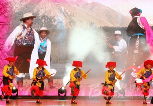 甘孜州地處高原,各縣地域環(huán)境、語言均有差異,且地近內(nèi)地,漢族、彝族、納西族音樂文化也有浸溶,因而民歌體裁、音韻、調(diào)式不全同于其他藏區(qū)。甘孜州的歌和舞,在不同縣之間,甚至同一個(gè)縣因山溝、村落不同,也存在較大差異,故呈多姿多彩狀況,藏族民歌極為豐富多彩,兩性相愛有情歌,勞動(dòng)之時(shí)有勞動(dòng)歌,伐薪、放牧有山歌,新友相聚有酒歌,婚嫁有婚禮歌,勸人勤于耕作有月會(huì)歌,還有新房落成歌,游春之時(shí)要跳弦子、鍋莊、踢踏舞,還要打“箍箍卦歌”等??傊菬o時(shí)不歌,無事不歌,人人能歌善舞,故甘孜州有“歌舞海洋”之美稱。