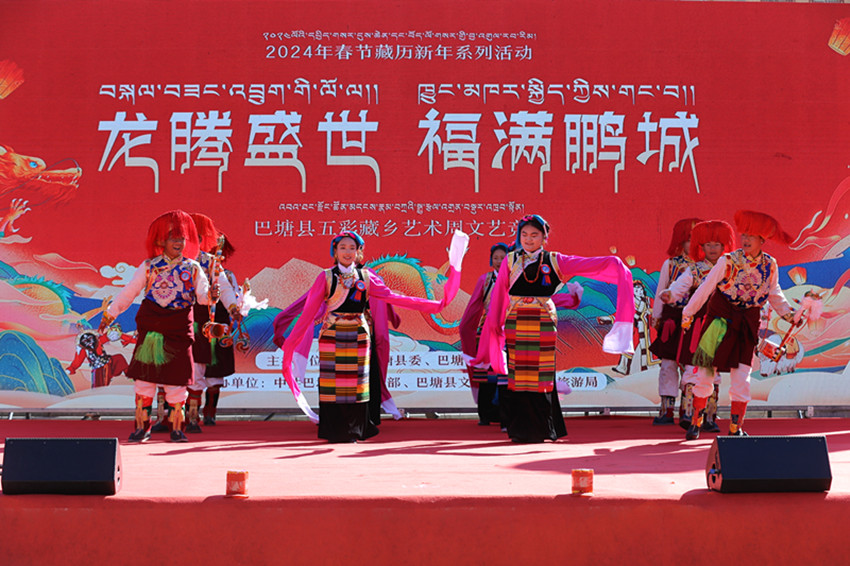 圖為巴塘縣五彩藏鄉(xiāng)藝術周弦子鍋莊展演活動現場。